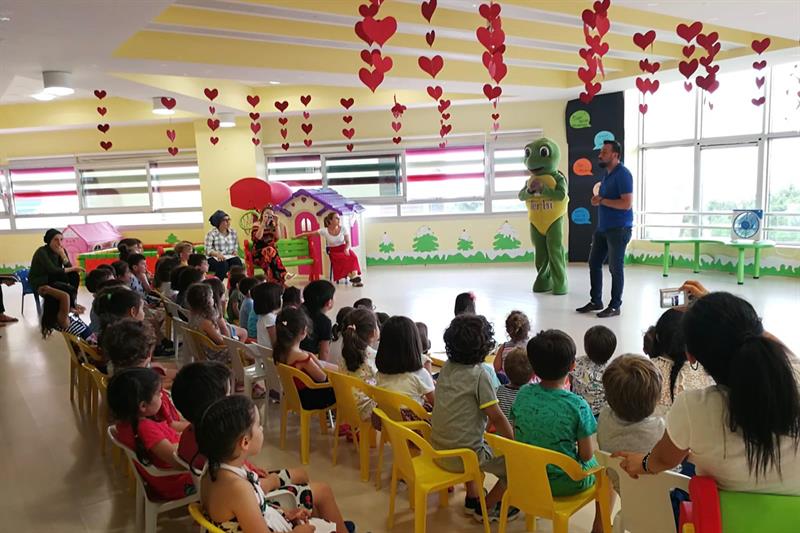 Kaplumbağa Maskot TERBİ Çocuklarla